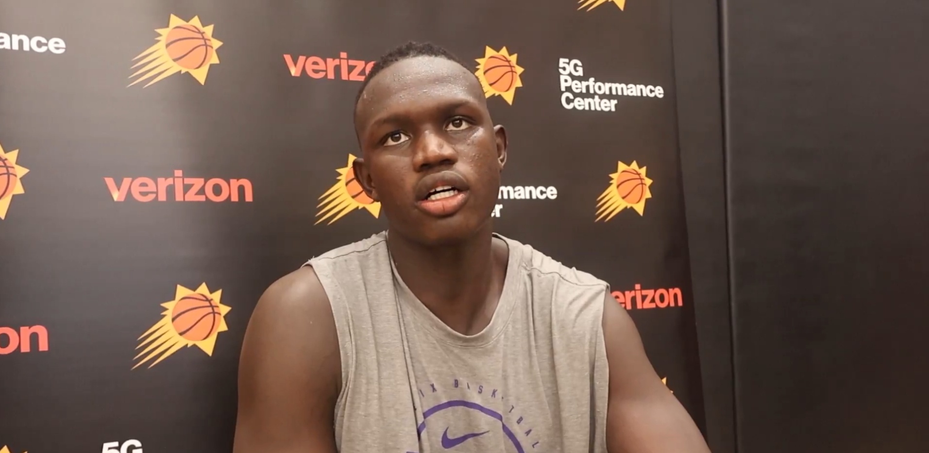 Ngày truyền thông mùa giải mới của đội NBA, Trung tâm số 10 của Suns và Trung tâm Nam Sudan Maluach đã được các phóng viên phỏng vấn.