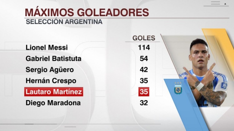 35 bàn thắng! Các bàn thắng của đội Argentina của Lautaro bằng với Crespo và đứng thứ tư trong lịch sử đội.